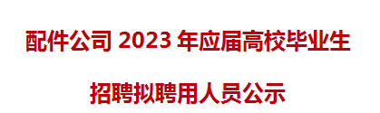 根據配件公司2023校園招聘實施方案和有關制度要求,確(què)定鮑(bào)萌萌等14人(名單附後,以姓名首拼爲序) 爲我公司拟聘人選,現面向社會進行公示。公示期五天,自2023年5月29日至2023年6月2日止。 監督電話: 0551-63689007 來信地址:合肥市蜀山區......